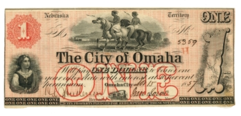 1857 City of Omaha Nebraska Territory NE $1 Obsolete Note (64796)