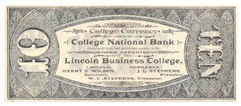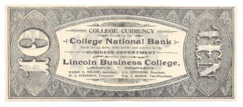 Circa 1900’s Lincoln Business College, Nebraska $10 NE 250-10.A (58002)