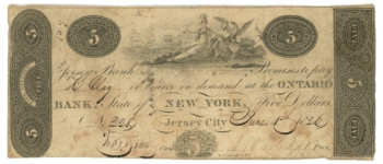 1826 Jersey Bank, Jersey City, NJ $5 Obsolete Note – Haxby NJ245-G52 (63382)