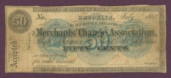 1862 Merchants Change Association, Brooklyn, New York 50c Obsolete Note (60547)