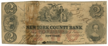 1862 New York County Bank New York NY $2 Obsolete Note – Spurious (64416)