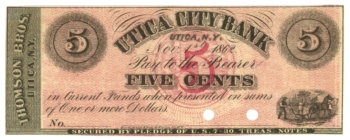 1862 Utica City Bank New York 5 Cents NY (L5133)