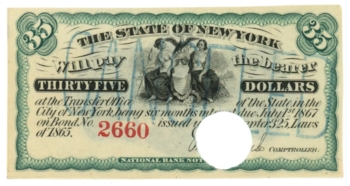 1865 State of New York 25 cent NY No.2660 (L4038)
