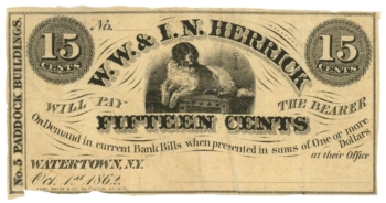 1862 WW & IN Herrick Watertown NY 15C (L4725)