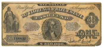 1871 Mt. Florence Prize Estate & Cash Fund, New York $1 Note (63376)