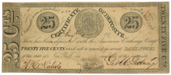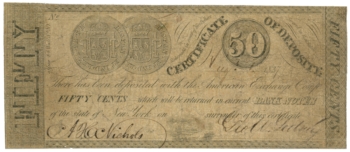 1837 Certificate of Deposite New York NY 50c (L2031)
