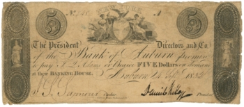 1832 Bank of Auburn New York NY $5 No.848 (L2042)