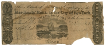 1831 Merchants Bank, New York City, NY $3 Obsolete Note G34 (62652)