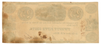1837 New York Rice Mill, New York, NY 25c Obsolete Note H842 (59975)