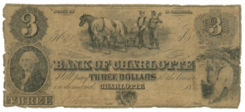 1850’s Bank of Charlotte, North Carolina $3 Obsolete Note NC5G2 (62210)