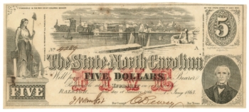 1863 State of North Carolina, Raleigh, NC $5 Obsolete Note No.2748 (62188)