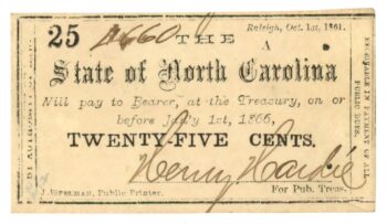 1861 State of North Carolina, Raleigh, NC 25c Note No.4660 CR55 (59118)