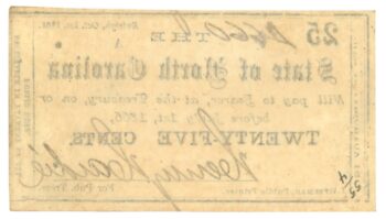 1861 State of North Carolina, Raleigh, NC 25c Note No.4356 CR65 (59116)