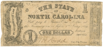 1866 State of North Carolina NC $1 No.2710 (L1959)