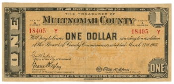 1933 Multnomah County, Oregon $1 Depression Era Scrip No.18405Y (62513)