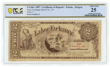 1897 Labor Exchange Toledo Oregon OR 2 Units Branch 219 PCGS VF25 (65076)