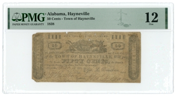 1838 Town of Hayneville Alabama AL 50c Scrip PMG 12 AO237-$.50a GD Plate Note