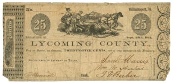 1862 Lycoming County Williamsport, Pennsylvania PA 25 cents (L0053)