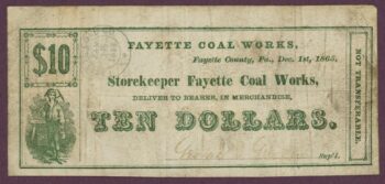 1865 Fayette Coal Works, Fayette County, Pennsylvania $10 Note H122-4 (60269)