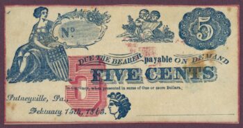 1863 Putneyville, Pennsylvania 5c Obsolete Note H326-1 (60229)
