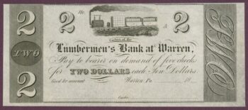 18XX Lumbermen’s Bank at Warren, Pennsylvania $2 Obsolete Note (60224)
