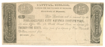 1837 Philadelphia City Savings Institution Pennsylvania PA 25c Note (64072)