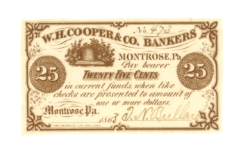 1863 W.H. Cooper & Co. Bankers Montrose PA 25 Cents (L5058)