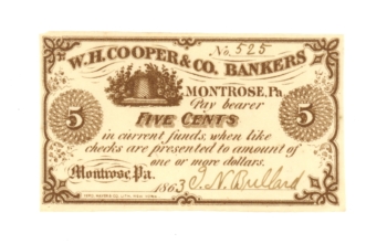 1863 W.H. Cooper & Co. Bankers Montrose PA 5 Cents (L5059)