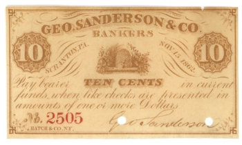 1862 Geo Sanderson & Co Bankers Scranton Pennsylvania PA 10c Obsolete Note 64067