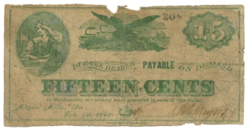 1863 Meyers Mills Pennsylvania PA 15c Obsolete Scrip Hoober 235-2 (64049)