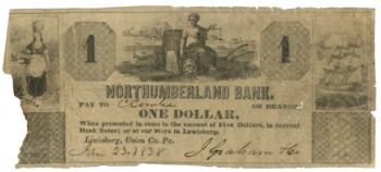 1838 Northumberland Bank Lewisburg Pennsylvania PA $1 Obsolete Note (64050)