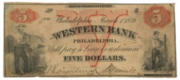 1859 Western Bank of Philadelphia, Pennsylvania $5 Obsolete Note No.1540 (59814)