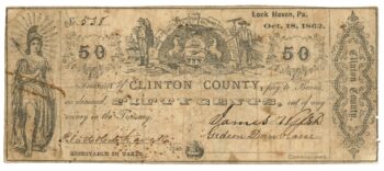 1862 Clinton County, Lock Haven, Pennsylvania 50c Obsolete Note No.538 (59721)