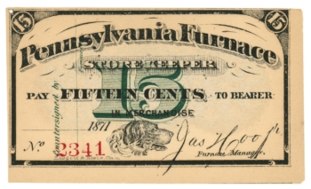 1871 Pennsylvania Furnace Store Pennsylvania PA 15c Obsolete Scrip H-UNL (63910)