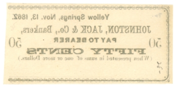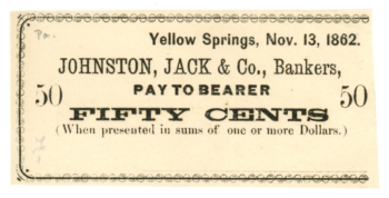 1862 Johnston Jack & Co. Bankers Yellow Springs Pennsylvania PA 50c Note (63924)