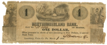 1838 Northumberland Bank, Lewisburg, Pennsylvania $1 Obsolete Note (63351)
