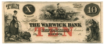 18XX Warwick Bank Rhode Island $10 RI (L6573)