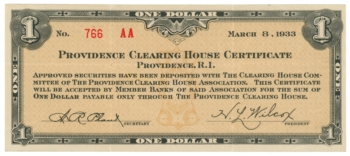 1933 Providence Clearing House Certificate, RI $1 Depression Era Scrip (62099)