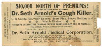 Dr. Seth Arnold’s Cough Killer, Woonsocket, Rhode Island Ad Note (62638)