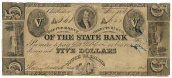 1841 State Bank, Charleston, South Carolina $5 Obsolete Note No.341 Sh428 62773