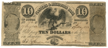 1850 Planters & Mechanics Bank, Charleston, South Carolina $10 Obsolete Note