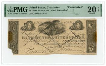 1828 Bank of the United States Charleston Branch SC $5 CTFT PMG 20 NET (65475)
