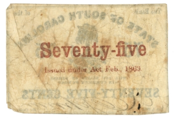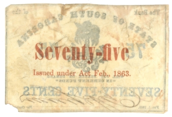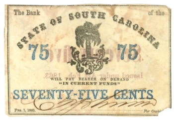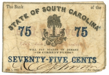 1863 Bank of the State of South Carolina, Charleston SC 75c Note (63534)