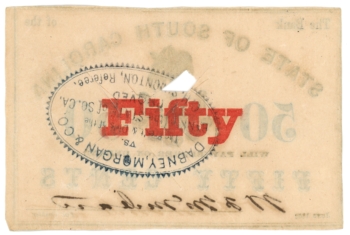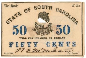 1862 Bank of the State of South Carolina, Charleston, SC 50c Obsolete Note