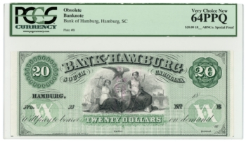 18XX Bank of Hamburg South Carolina SC $20 Proof Note PCGS UNC 64PPQ (64770)