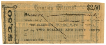 186_ Treasury Warrant State of Texas TX $2.50 (L3064)