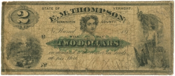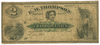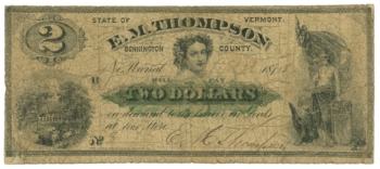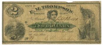 1874 E.M. Thompson, Bennington County, Vermont $2 Obsolete Scrip No.8 (62138)