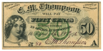 1876 E.M. Thompson, Bennington County, Vermont 50c Obsolete Scrip No.80 (62137)