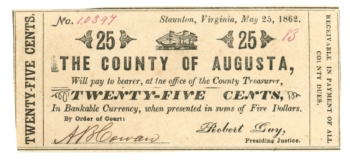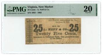 1862 A Neff & Co New Market Virginia VA 25c Obsolete Scrip PMG 20 (65604)