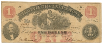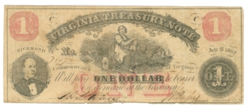 1862 Virginia Treasury Note $1 Richmond VA (L6230)